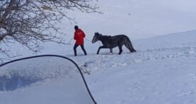 KURTLARIN SALDIRISINA UĞRAYAN VE DAĞDA MAHSUR KALAN AT KURTARILDI